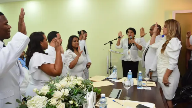 En el acto realizado en el Palacio Municipal de Estebania, fue juramentado el vice sindico Jhonny Mejía, el presidente de la sala capitular Edgar Matos, la vice presidenta Laura Olivo y Yoemi Núñez, secretaria, también los regidores Olga Mercedes Olivo, Junior Sánchez y Julio Alberto Mejía.