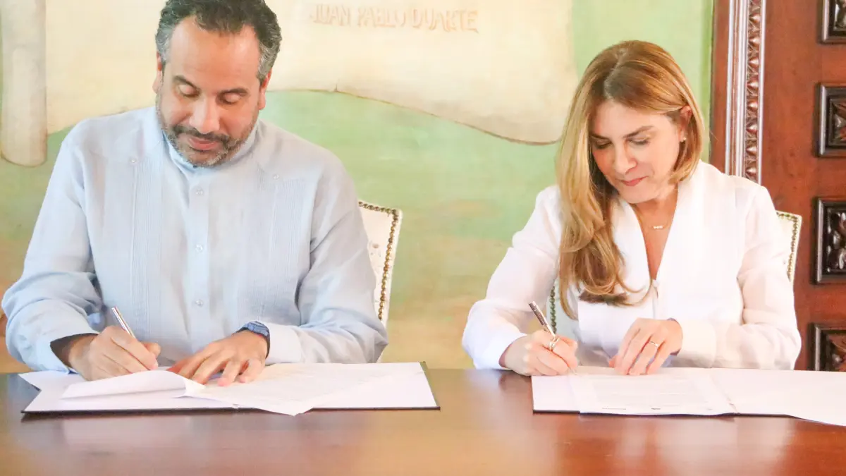 La alcaldesa Carolina Mejía y el director ejecutivo del INEFI, Alberto Rodríguez Mella, tras rubricar sus firmas, se comprometieron “a coordinar, supervisar, desarrollar e implementar actividades conjuntas tendentes a generar y fortalecer capacidades técnicas y productivas, necesarias para la consecución de la práctica saludable del deporte en los torneos intercolegiales”.