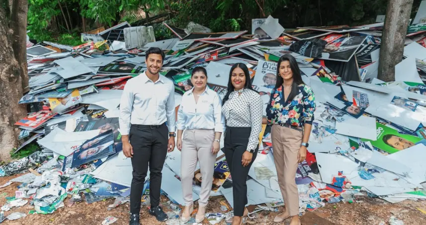 Alcaldía del DN dona afiches políticos retirados a fundación Botellas de Amor para reciclaje