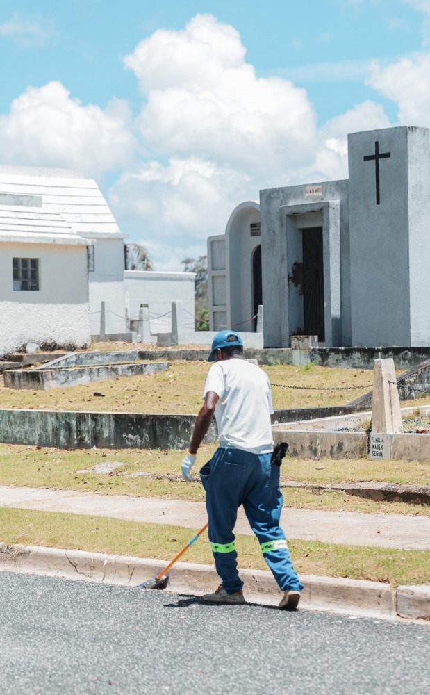 Carolina Mejía informó que el operativo se ejecuta en el Cementerio Nacional Máximo Gómez, el Cristo Rey y el Cristo Redentor en adición a las brigadas que de manera permanente realizan labores de limpieza y mantenimiento en los camposantos.