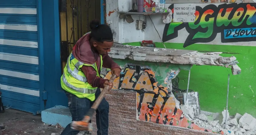 Alcaldía DN y la Dirección de Casinos y Juegos de Azar eliminan bancas ilegales ocupaban aceras en la Albert Thomas