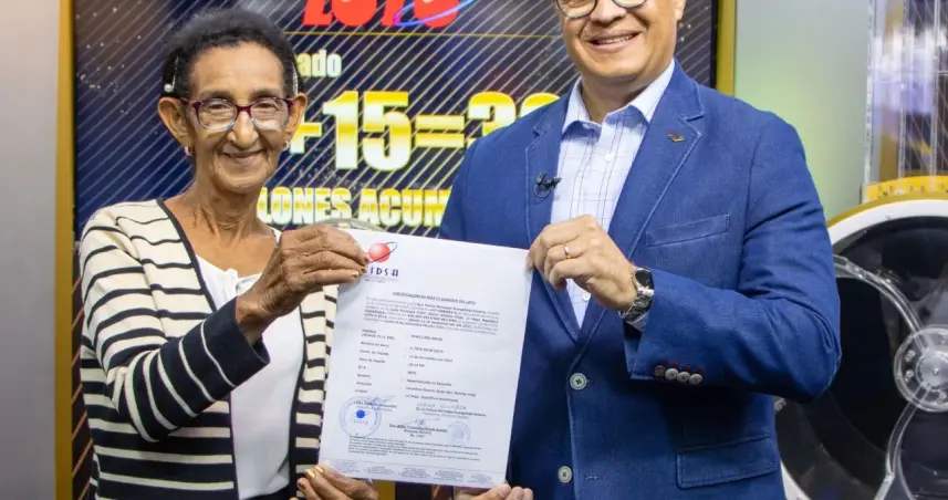 SANTO DOMINGO.- La Sra. Felicia Mercedes Evangelista Rosario, recibió el certificado que la acredita como la ganadora de los 32 millones de pesos que tenía el sorteo del Loto el pasado sábado 12 de noviembre del 2022, al acertar con los números: 3-21-22-26-28-36.