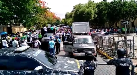 Mientras se desarrollaba la manifestación agentes policiales se mantuvieron apostados entre las avenidas México y doctor Delgado y desviaban el paso vehicular desde la 27 de febrero.