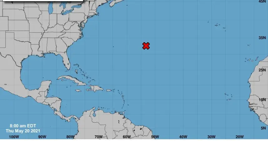 Miami.- El Centro Nacional de Huracanes (NHC) de Estados Unidos elevó este jueves a un 70 % las probabilidades de que un sistema de baja presión no tropical situado al este de Bermudas se transforme en 48 horas en la primera tormenta del año en el Atlántico.