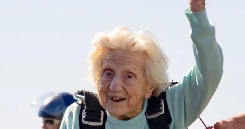 Anciana de 104 años salta en paracaídas para alcanzar récord Guinness
