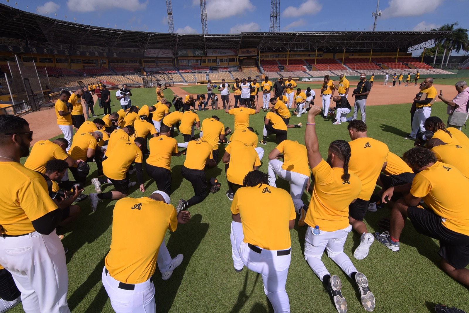 Durante la apertura, también se dirigieron a los jugadores Luis Polonia, en su calidad de coach y asistente especial del Gerente, y el veterano receptor Francisco Peña, ambos con mensajes que invitan a la unidad y solidaridad entre jugadores y equipo.