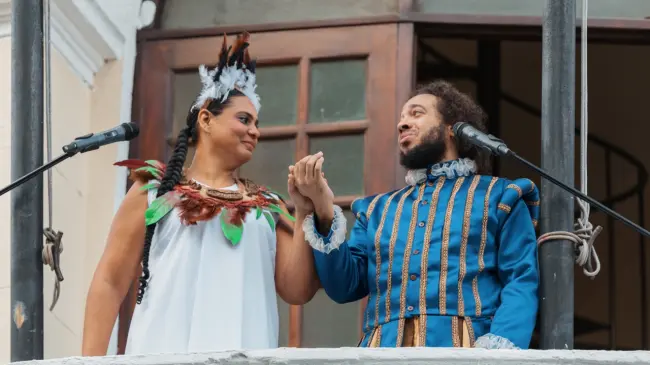 Un balcón del Palacio Consistorial fue el sitio idóneo para dar lectura a la proclama, a cargo del personaje "heraldo de la colonia", en la que realizó un recorrido histórico de Santo Domingo, ponderando la importancia de que la familia del almirante Cristóbal Colón residiera en la ciudad.