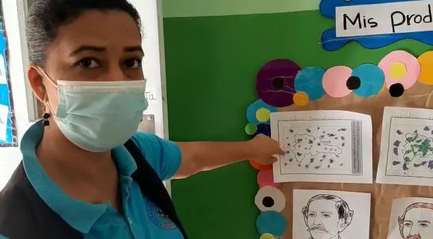 Además de las tabletas que contienen los programas y ejercicios didácticos, diseñados por el ministerio de Educación, otra de las alternativas que utilizan los profesores, son las pantallas digitales para explicarles a los alumnos la programación del día.