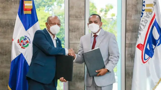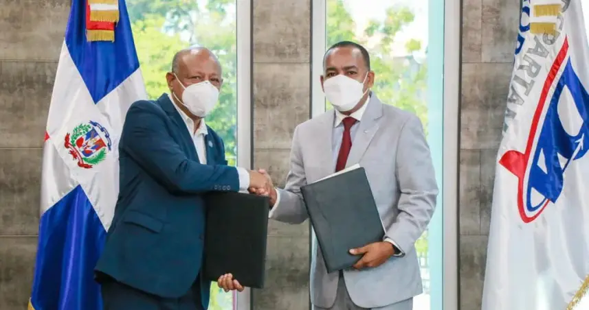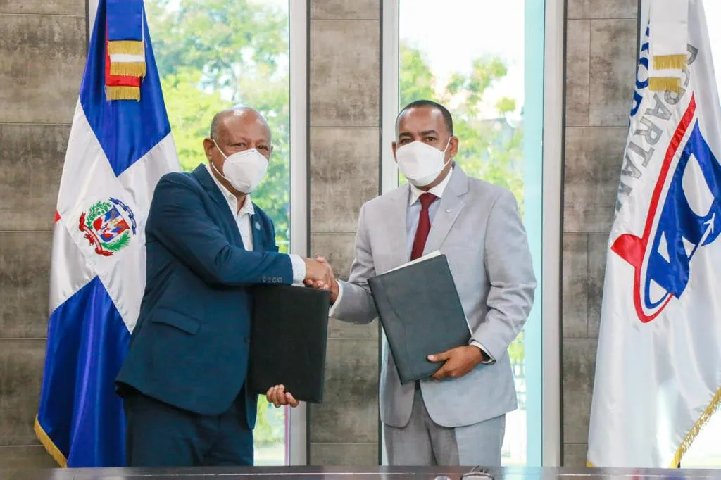 SANTO DOMINGO. - El director ejecutivo del Departamento Aeroportuario (DA), Víctor Pichardo y el director general del Instituto Agrario Dominicano (IAD), Francisco Guillermo García, firmaron un acuerdo interinstitucional que tiene como propósito, dotar a la entidad aeroportuaria, de la titularidad de los terrenos donde se encuentran los aeropuertos y helipuertos del país.