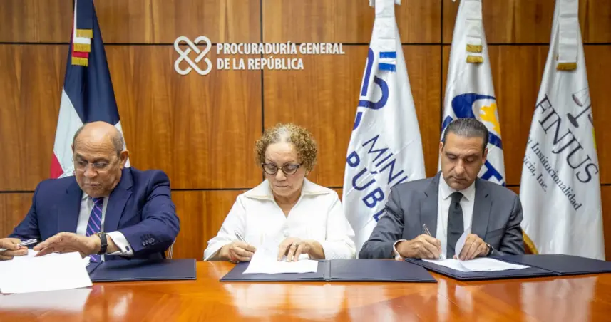 El plan se desarrollará como parte de un acuerdo de cooperación interinstitucional firmado por la procuradora general Miriam Germán Brito, el director de Infotep, Rafael Santos Badía, y el vicepresidente ejecutivo de Finjus, Servio Tulio Castaños Guzmán.
