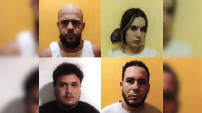 La colombiana Geraldyne Torres Betancur, y los dominicanos Jason Manuel Santana, alias “Nino”; Dariel Castro Santos y Félix Joel Rodríguez, alias Joi, son señalados de integrar una organización criminal transnacional que trajo al país a las ocho colombianas bajo engaños, las ofrecían en discotecas, y obligaban a sostener relaciones sexuales para pagar una supuesta deuda de tres mil quinientos 500 dolares.