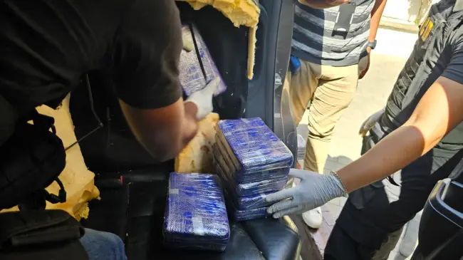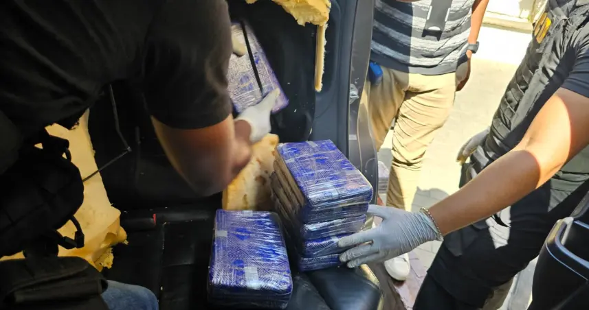 Posteriormente, por instrucciones de los fiscales actuantes y por razones de seguridad, el detenido y el vehículo, fueron trasladados a la sede central de la DNCD, donde se realizó una inspección más rigurosa, encontrando encaletados en el interior de los asientos delanteros y traseros de la jeepeta, un total de 35 paquetes de una sustancia que se presume es cocaína.
