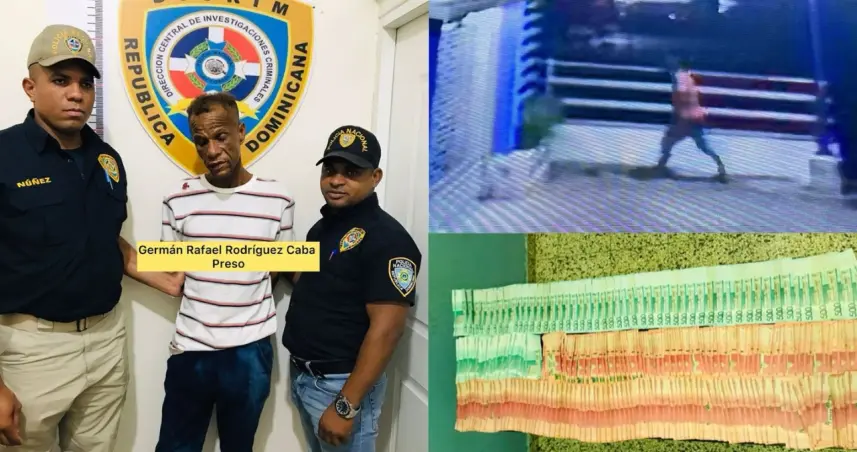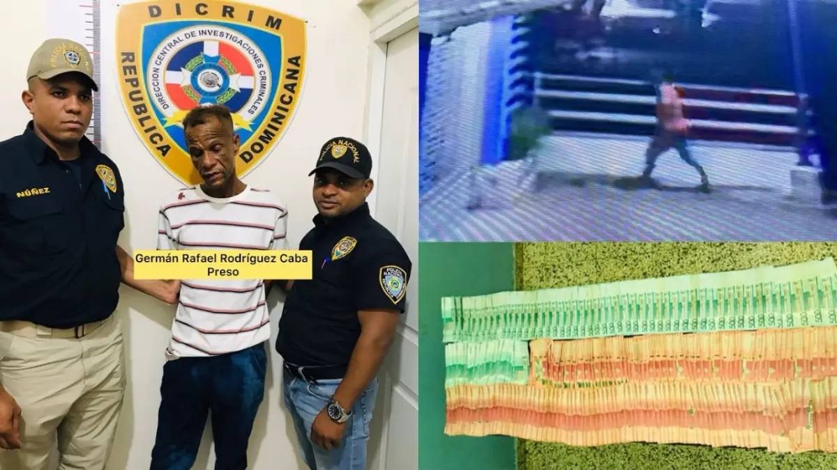 Los agentes del DICRIM La Vega iniciaron el proceso de investigación y apresaron en tiempo récord al nombrado Germán Rafael Rodríguez Caba, a quien se le ocupó en uno de sus bolsillos la suma de RD$40,500.00 pesos, posteriormente mediante labor de investigación los agentes lograron recuperar mediante entrega voluntaria la suma de RD$150,000.00 pesos, para un total recuperado de RD$190,500.00 pesos dominicanos.