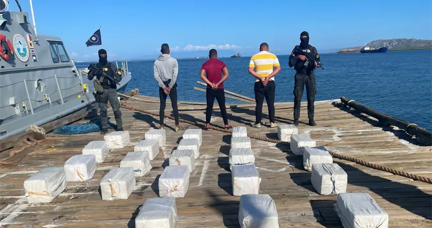 “Los ocupantes de la embarcación de color azul, sin nombre ni matricula, se presume que llegaron a costas dominicanas, procedente de Sudamérica, mientras el Ministerio Público y la DNCD profundizan la investigación para arrestar a otros implicados en la frustrada operación de narcotráfico internacional”.