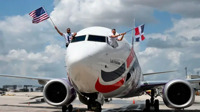 La aerolínea dominicana aterrizó en el Aeropuerto Internacional de Miami con 189 pasajeros en un Boeing 737 Max 8 de nombre Los Haitises, que tiene la bandera nacional dibujada a lo largo del fuselaje de la aeronave.
