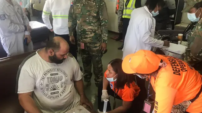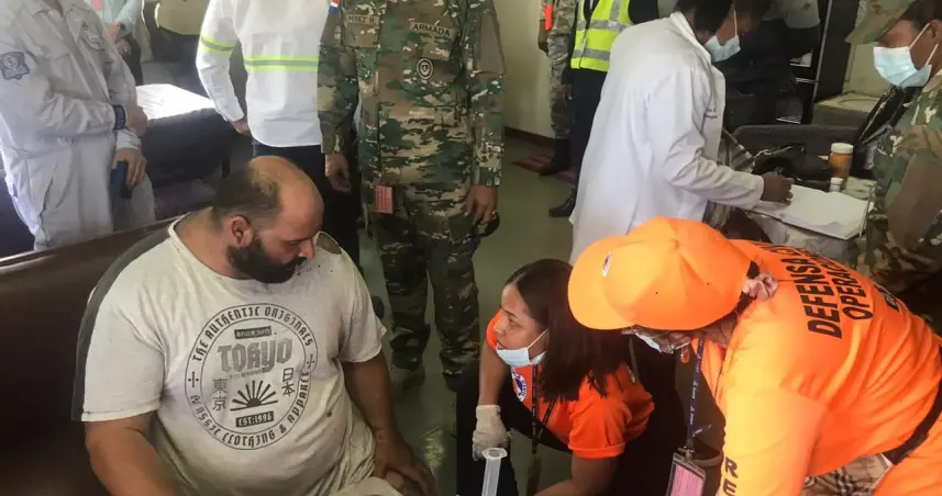 A su llegada, los náufragos fueron evaluados por la doctora, teniente de navío Ibanelis Pérez Ferrera, ARD, médico de servicio de la capitanía, junto con la doctora Andris Sánchez de la Defensa Civil.