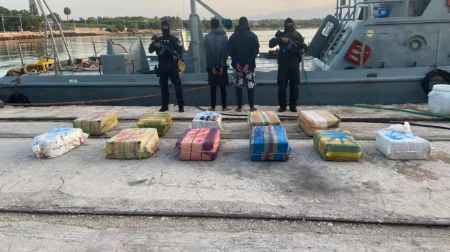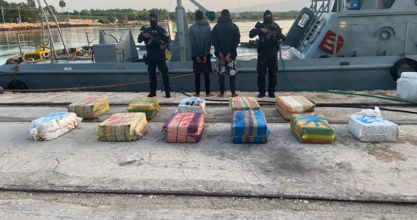 Arrestan a dos hombres e intervienen lancha con 338 paquetes presumiblemente cocaína