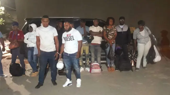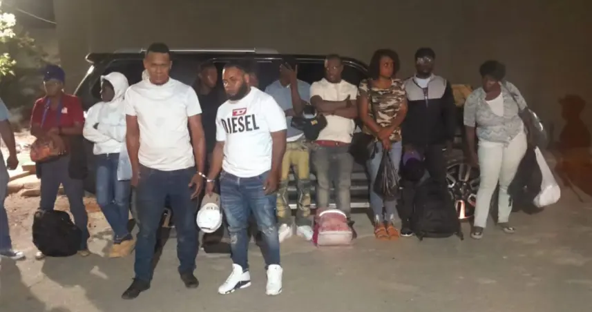 Marcu Issaa y Rorny Elia, fueron detenidos en la jeepeta Toyota 4runner Limited, color negro, placa G625403, donde eran transportados 4 hombres, 6 mujeres y 5 menores de edad.