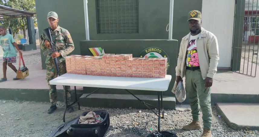 Azua. - Dos pasajeras de un autobús del transporte público fueron detenidas durante una inspección vehicular realizada por miembros del Ejército, en la cual fue encontrado un contrabando de 100 paquetes de cigarrillos en dos maletas.