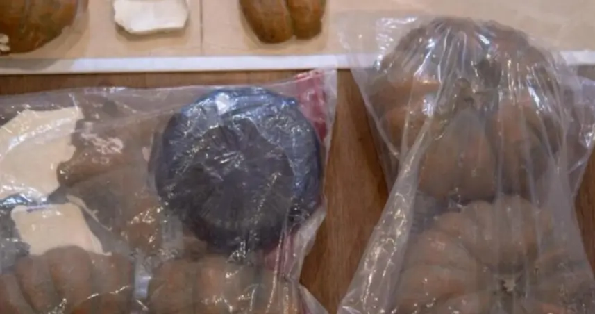 Mientras que, en el segundo contenedor, se ocuparon otras noventa y cinco (95) auyamas artificiales conteniendo en su interior un paquete cada una, con un peso de 95 kilogramos.