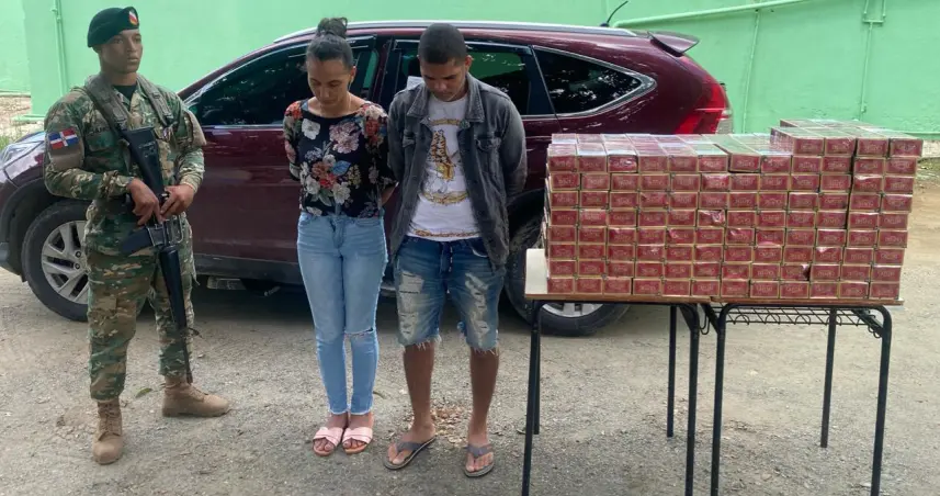 Un hombre y una mujer fueron arrestados en Santiago Rodríguez con 39,800 cigarrillos de contrabando en compartimentos ocultos de su jeepeta.