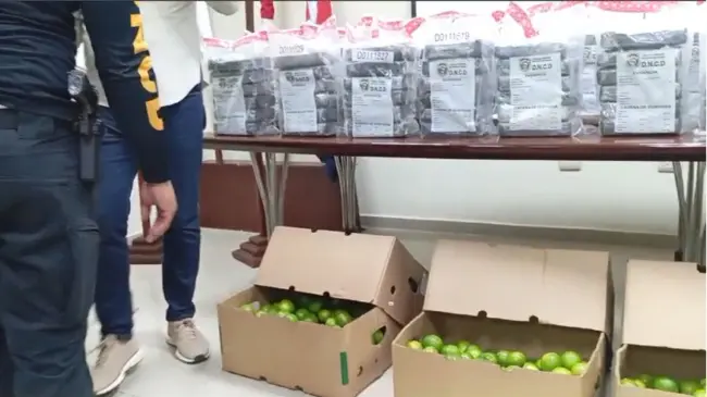 Posteriormente, por instrucciones del Ministerio Público, se procedió a intervenir uno de los contenedores, cargado de limones, detectando 29 cajas contaminadas, conteniendo en su interior los 201 paquetes de la sustancia.