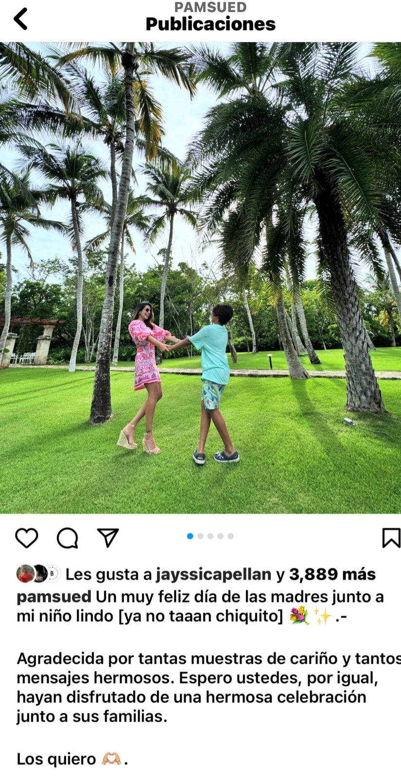 “Un muy feliz día de las madres junto a mi niño lindo [ya no taaan chiquito]. Agradecida por tantas muestras de cariño y tantos mensajes hermosos. Espero ustedes, por igual, hayan disfrutado de una hermosa celebración junto a sus familias”, escribió Sued junto a una publicación tomada de la mano de Alonso.