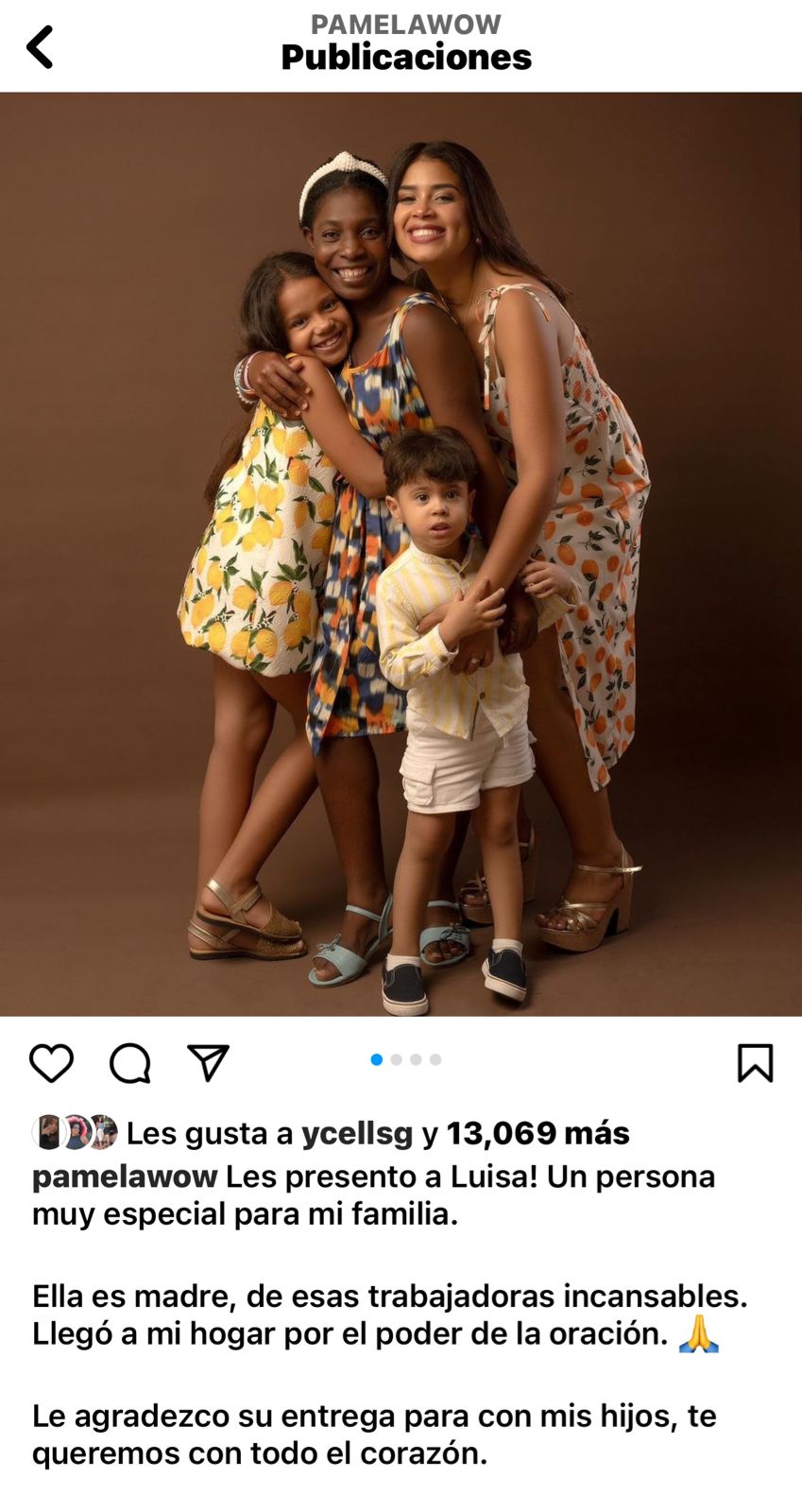 Pamela de León, comunicadora y Radio Host, compartió una imagen por el Día de las Madres en la que posa junto a sus dos hijos y con Luisa, “una persona muy especial para mi familia”.