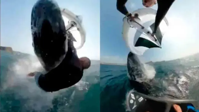 De repente, el cetáceo se abre paso y golpea accidentalmente al surfista con su cuerpo y lo envía muy lejos, sin embargo, de acuerdo con Breen, durante el colapso, la ballena enganchó la correa del hombre y lo arrastró bajo el agua.