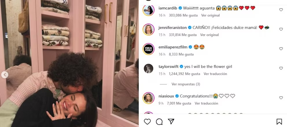 La empresaria Isabel Alysa aseguró en los comentarios de la publicación de Instagram que ya sabía que Benny Blanco era el hombre correcto para la estrella: “No podría estar más feliz por ti. ¡Dios es tan bueno y tú eres tan merecedora de este amor! Sabía que él era el indicado para ti. Te amo ángel”, señaló.