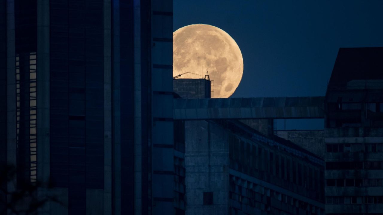 En Caracas, Venezuela, Miguel Gutiérrez, publicó una vista de la luna llena junto a una de las torres de Parque Central este viernes, después del eclipse.