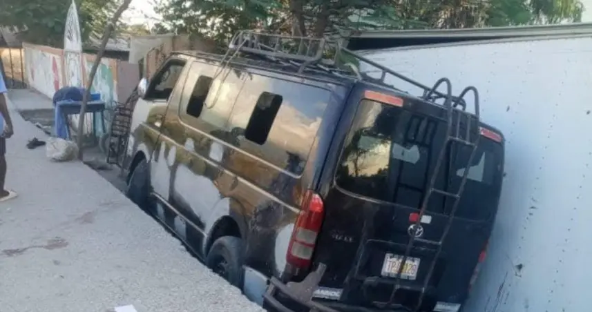 El minibús, que cubría la ruta Saint-Marc-Port-au-Prince, fue blanco de ráfagas de armas automáticas cerca de la estación de combustible Stop-Over.