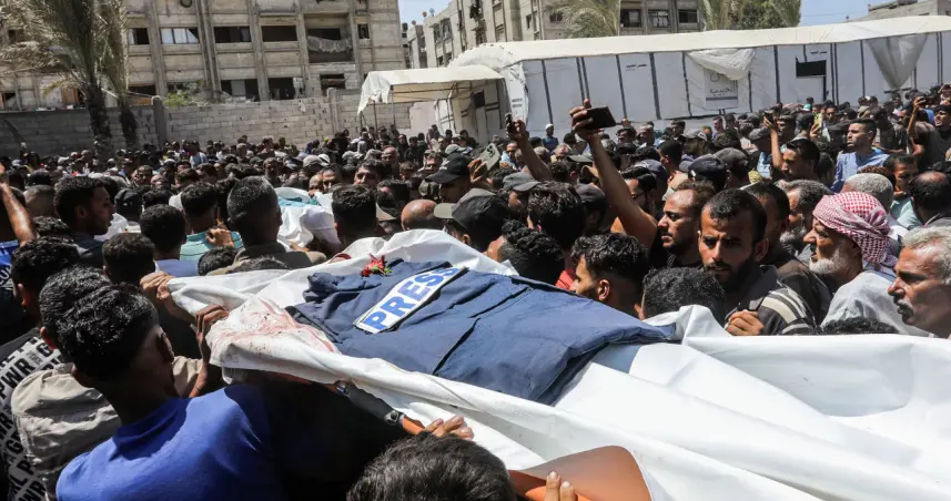 En este doble ataque han sido asesinados Hossam Al Masri (camarógrafo de la agencia de noticias Reuters), Mohamed Salama (camarógrafo de la cadena catarí Al Jazeera), Mariam Abu Daqqa (informadora de la agencia estadounidense AP), Moaz Abu Taha (reportero de la cadena estadounidense NBC) y Ahmed Abu Aziz (periodista para la Red Quds Feed).