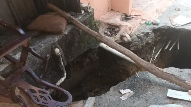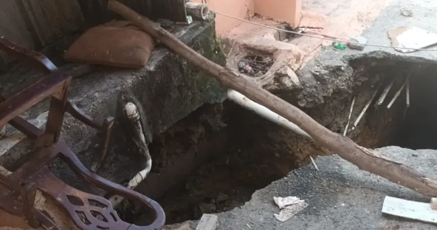 Santo Domingo.- Pese a la constante amenaza que genera un socavón en la calle Libertador, en el sector La Zurza Uno, autoridades aún no se presentan en la zona para ofrecer una respuesta. Los comunitarios aseguran estar atemorizados ante esta situación que pone en riesgo sus vidas y bienes.