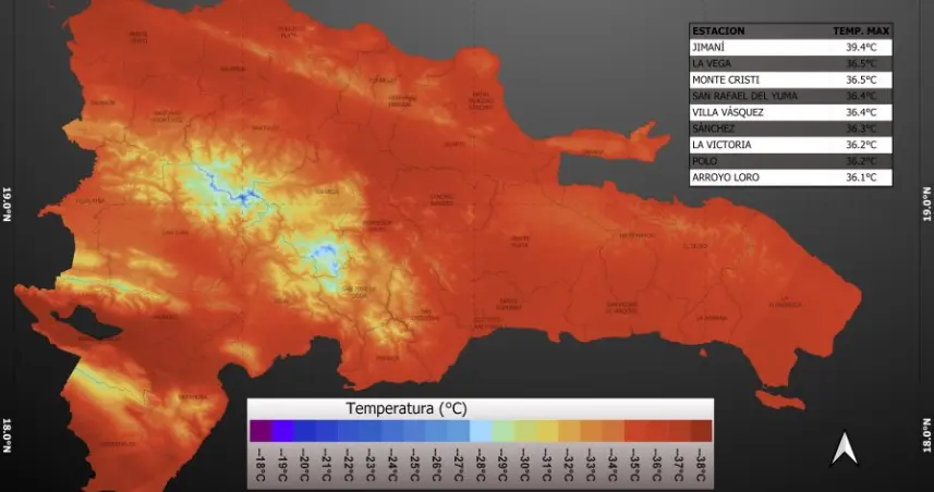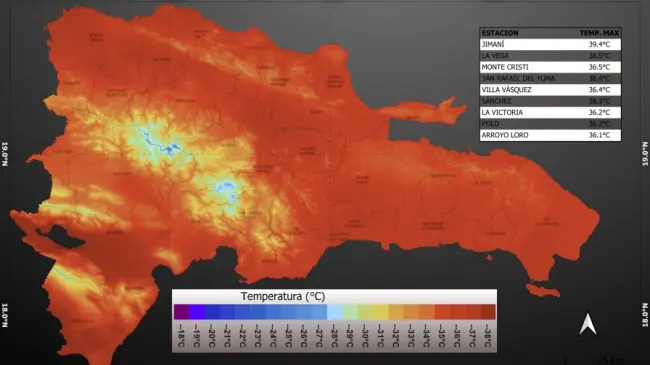 La temperatura más alta registrada en la citada demarcación por la Oficina Nacional de Meteorología (ONAMET) fue una máxima de 39.4°C. el pasado jueves 3 de agosto.