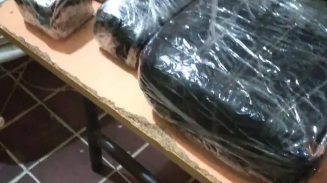 Según el informe, al ser requisado se le ocupó en una mochila cinco paquetes de un vegetal, presumiblemente marihuana, distribuidos en pedazos de funda plástica de color negro con rayas transparente y cinta adhesiva, con un peso aproximado de 15.0 Libras.