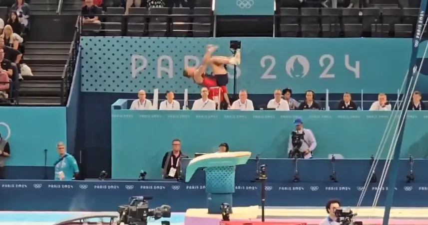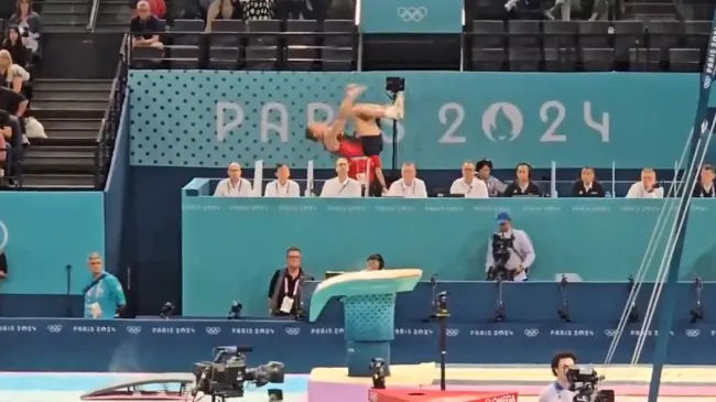 REDACCIÓN. - El gimnasta dominicano Audrys Nin Reyes realizó un salto impecable, pero falló en la postura de caída en su segundo salto del potro, lo que dificulta las posibilidades de avanzar, pese a lucir impecable en su primer salto.