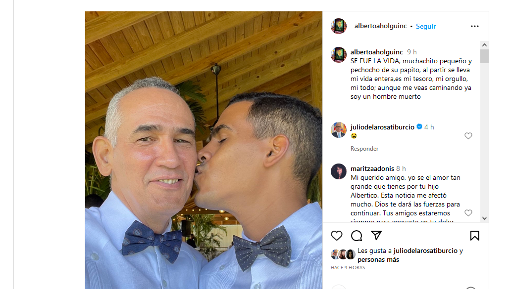 REDACCIÓN.- El exdirector de Instituto Nacional de Aguas Potables y Alcantarillados (INAPA), Alberto Holguin, se pronunció a través de sus redes sociales con la frase “se fue la vida”, tras el fallecimiento de su hijo mayor, la madrugada de este jueves.