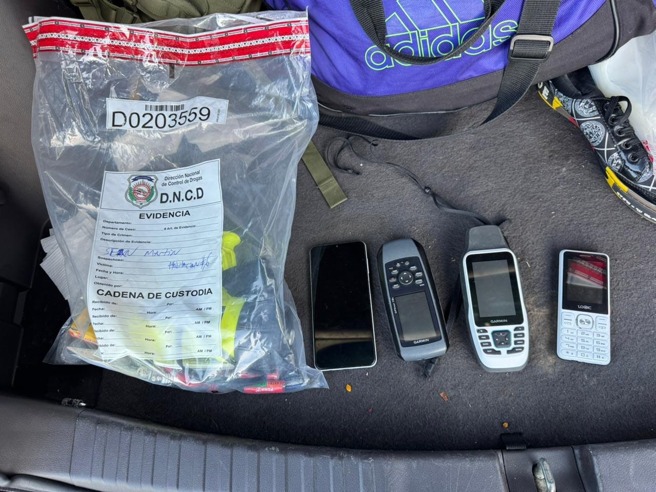 Al momento de su captura a los extranjeros que trajeron la droga al país, se les incautó, dos Gps marca Garmin, seis celulares, una cubeta con indumentarias para pescar y documentos personales.