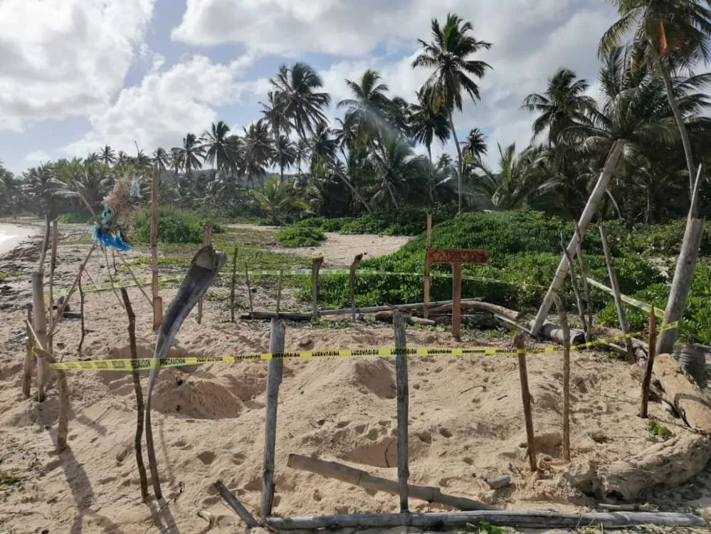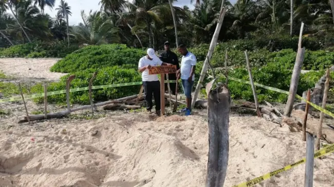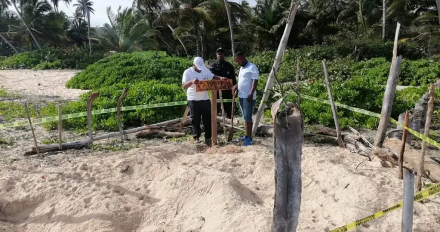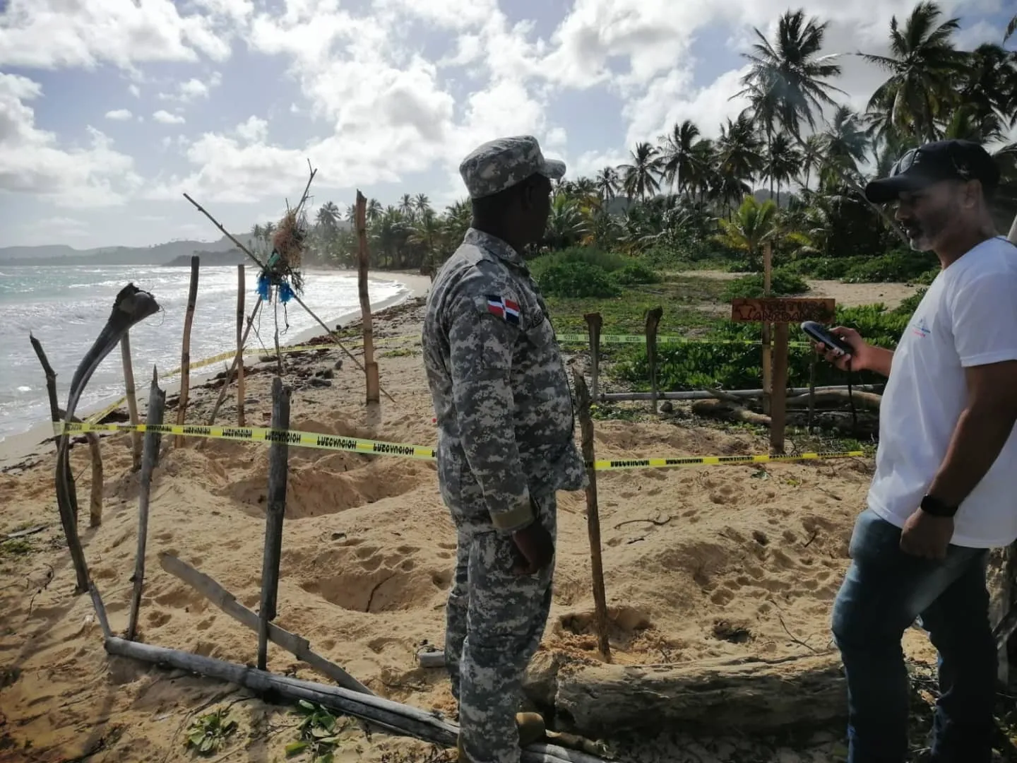 Autoridades custodian nido de tortuga Tinglar en playa de Las Galeras en Samaná