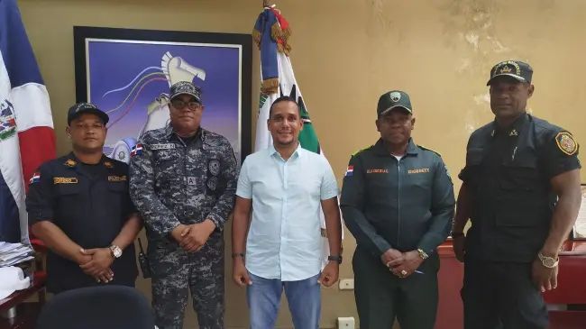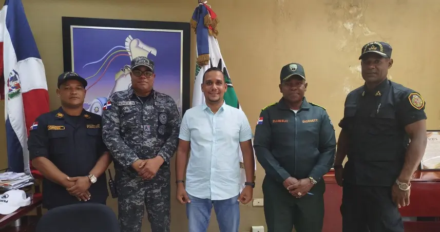Durante la reunión, el alcalde estuvo acompañado por el Mayor Guillermo de la Cruz, Director Provincial de la Dirección General de Seguridad de Tránsito y Transporte Terrestre (DIGESETT); Claudio Rosario Castillo, Intendente del Cuerpo de Bomberos de Monte Plata; y el Coronel Jonathan Moreno, Intendente del Cuerpo de la Policía Municipal. El encuentro también contó con la presencia del Coronel José Ramón Pérez Núñez, Subdirector Provincial de la Policía Nacional de la 5.ª Compañía.