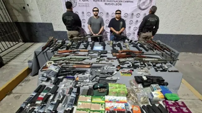 Ciudad de México.– Ciudad de México.- La Secretaría de Seguridad y Protección Ciudadana (SSPC) de México informó este miércoles de la detención de tres personas que tenían un "arsenal" de al menos 64 armas y miles de cartuchos útiles, en la ciudad de Monterrey, capital del estado de Nuevo León (norte).