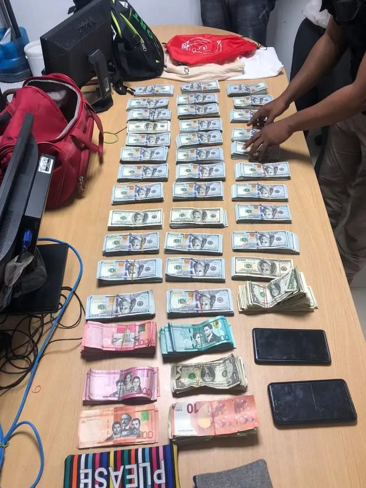 En la acción, además de la empleada, fue detenido su esposo Eusebio Santana Espiritusantos, quien al ser cuestionado dijo que los dólares se los dio a guardar una persona, negándose a revelar el nombre, hasta no estar en presencia de su abogado.
