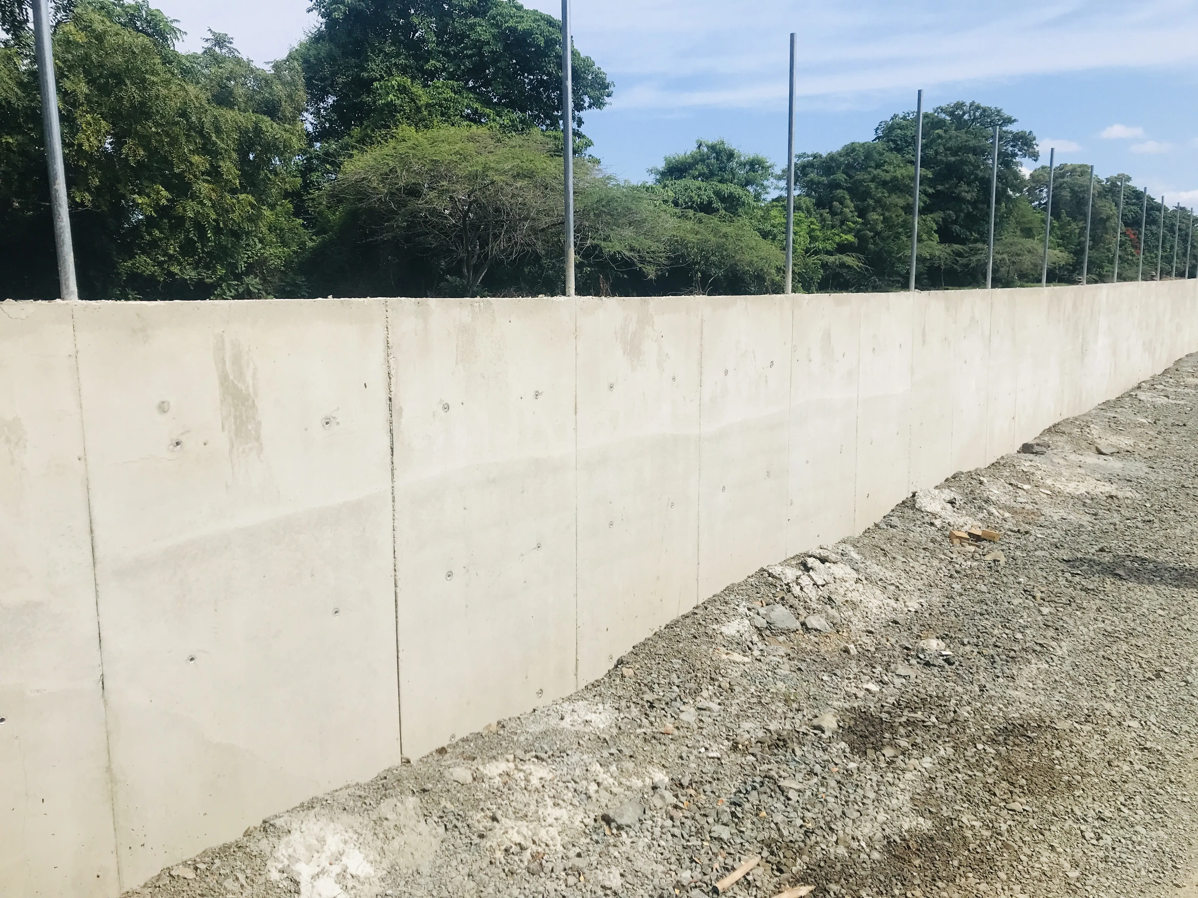 El muro que se levanta en la frontera dominico haitiana tiene 2.50 metros de altura en concreto y en malla ciclónica tiene unos 6 pies, con un espesor de 20 centímetros, y hasta la fecha se ha construido 700 metros lineales, según informó el ingeniero Marcos Abad, quien trabaja en el proyecto.