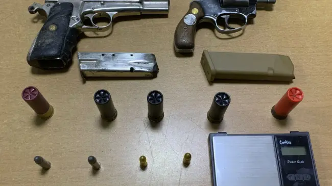 Asimismo, se incautaron un revólver marca Smith & Wesson, calibre .38, con dos municiones; un cargador de pistola Glock, calibre 9 mm; cinco cartuchos para escopeta calibre 12 y una balanza.