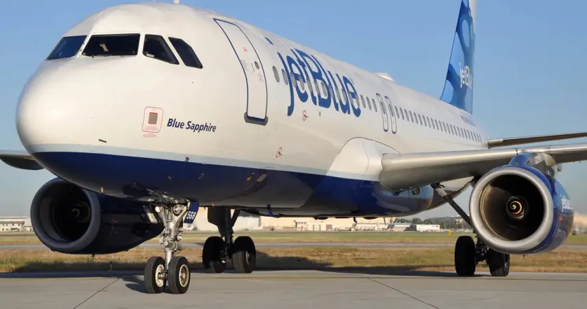 Avión de JetBlue pierde equilibro y se inclina hacia atrás