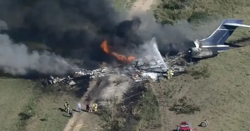 Hernández Lárez acompañó la información con fotografías en las que se puede observar el avión en pleno vuelo y, luego, otras imágenes que muestran los restos de la aeronave en llamas en un terreno boscoso.