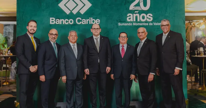 Santiago.– Santiago.- El emblemático Hodelpa Gran Almirante en esta ciudad fue el punto de encuentro entre amigos, clientes y aliados estratégicos de Banco Caribe para culminar las actividades de su 20 aniversario y celebrar juntos los logros y un futuro lleno de esperanza.