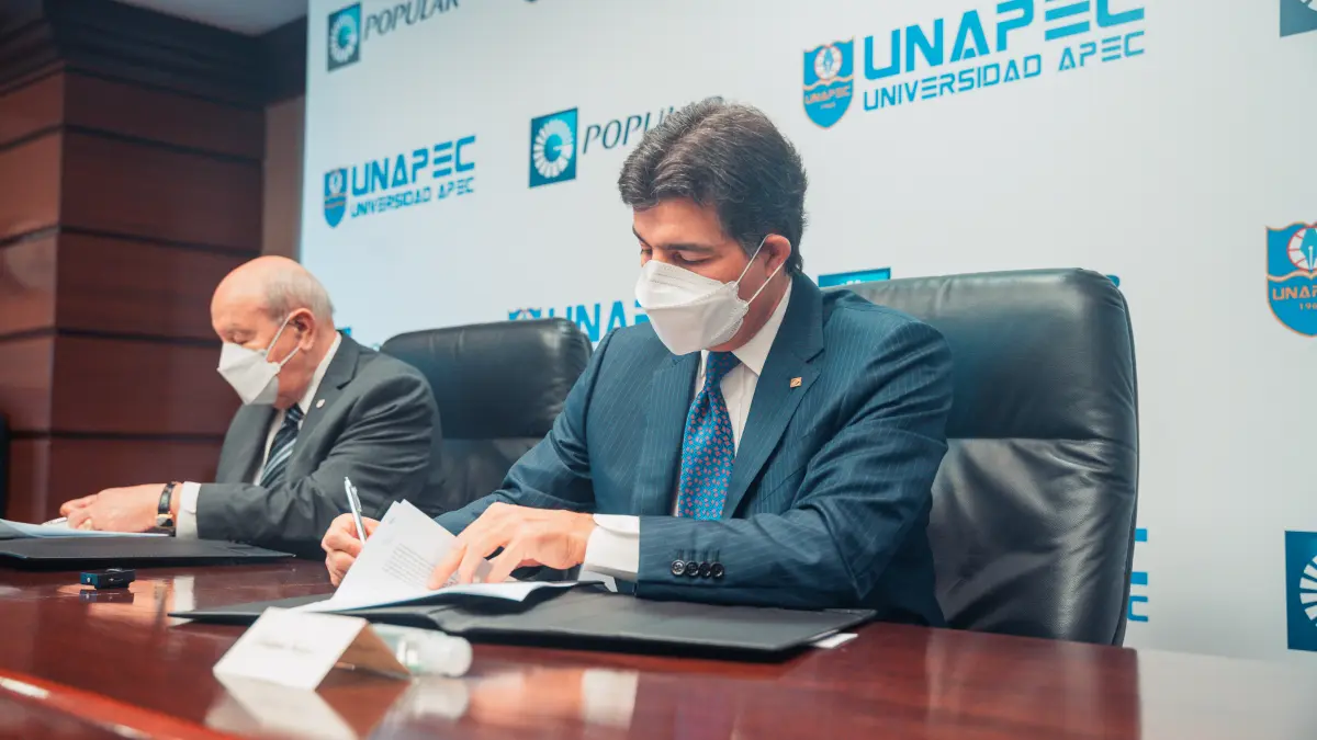 Santo Domingo.– SANTO DOMINGO.- El Banco Popular Dominicano y la Universidad APEC (UNAPEC) firmaron un acuerdo de colaboración para integrar a esta alta casa de estudios en el programa de becas Excelencia Popular, el más amplio del sector financiero, otorgando cinco becas universitarias o de nivel técnico superior a estudiantes meritorios que decidan cursar estudios en esta universidad.