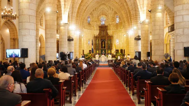 La primera dama, Raquel Arbaje; el señor Marino D. Espinal, presidente del Consejo de Administración del Banco Popular Dominicano, y el señor Christopher Paniagua, presidente ejecutivo de la entidad bancaria encabezaron la eucaristía llevada a cabo en la Catedral Primada de América, Basílica Menor de Santa María de la Encarnación, en Santo Domingo, oficiada por su Excelencia Reverendísima Monseñor Benito Ángeles, obispo auxiliar de la Arquidiócesis de Santo Domingo, ante más de 1,000 feligreses.
